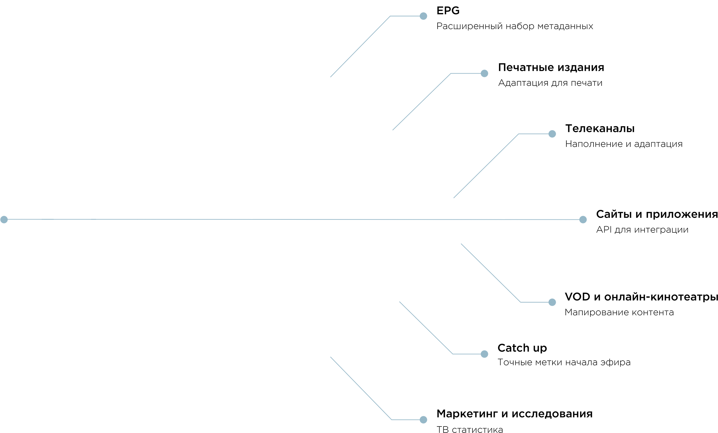 Мы первыми разработали информационную логистику телепрограммы от публикации в печатных изданиях до интеграции EPG в интернет, системы кабельного и спутникового телевещания.